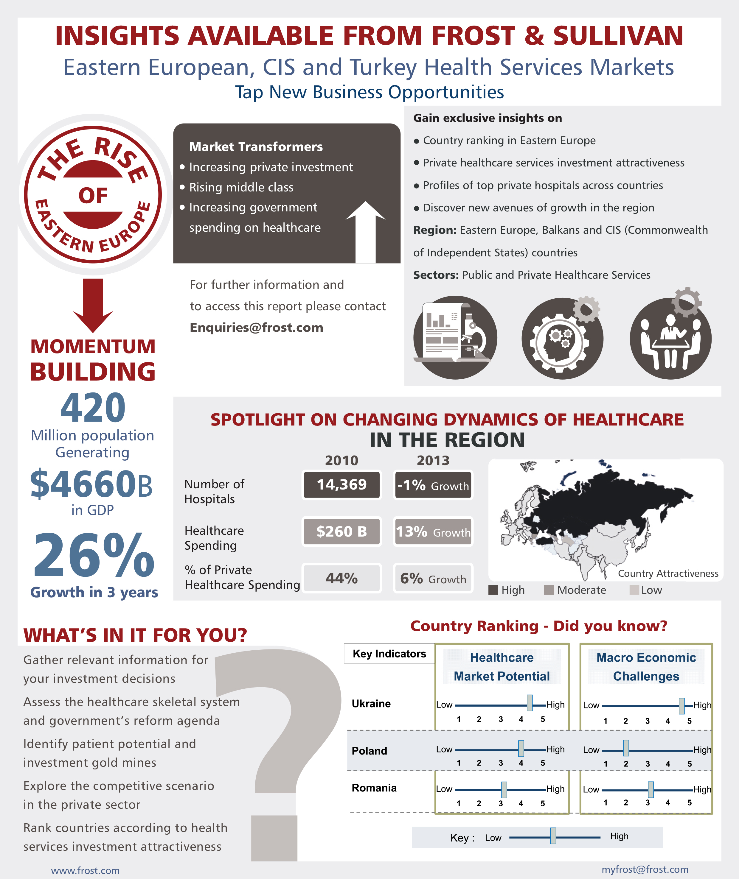 With a population of 420 million generating $4660 billion in GDP, Eastern Europe is swiftly gaining momentum as a key area for private and public investment in healthcare and health services, according to a new Frost & Sullivan Insights report.