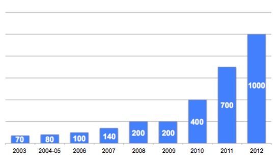 Number of applicants at BIT, the largest innovation contest in Russia and neighboring countries (2003-2012)