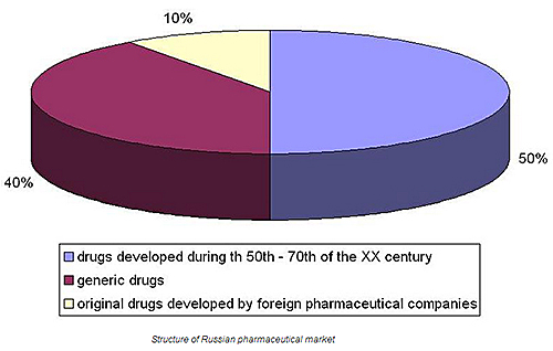 According to data complied by the experts involved in the analysis of the pharmaceutical market n Russia. in the period between January 2010 and January 2011, the size of the market increased by 12%. This growth rate is poorer result if we compare it to results from before the crisis (20-25% annually), but it positively stands out from the global market (5-7%). The increase in sales of packaged pharmaceuticals and medical goods is much more modest ‑ only 1%. This reflects the general trend observed in 2011 ‑ a decrease in sales of low-cost medicines and an increase in sales of the expensive ones.