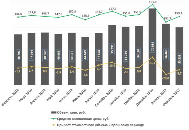 Коммерческий рынок ЛП России, февраль 2016 г. – февраль 2017 г